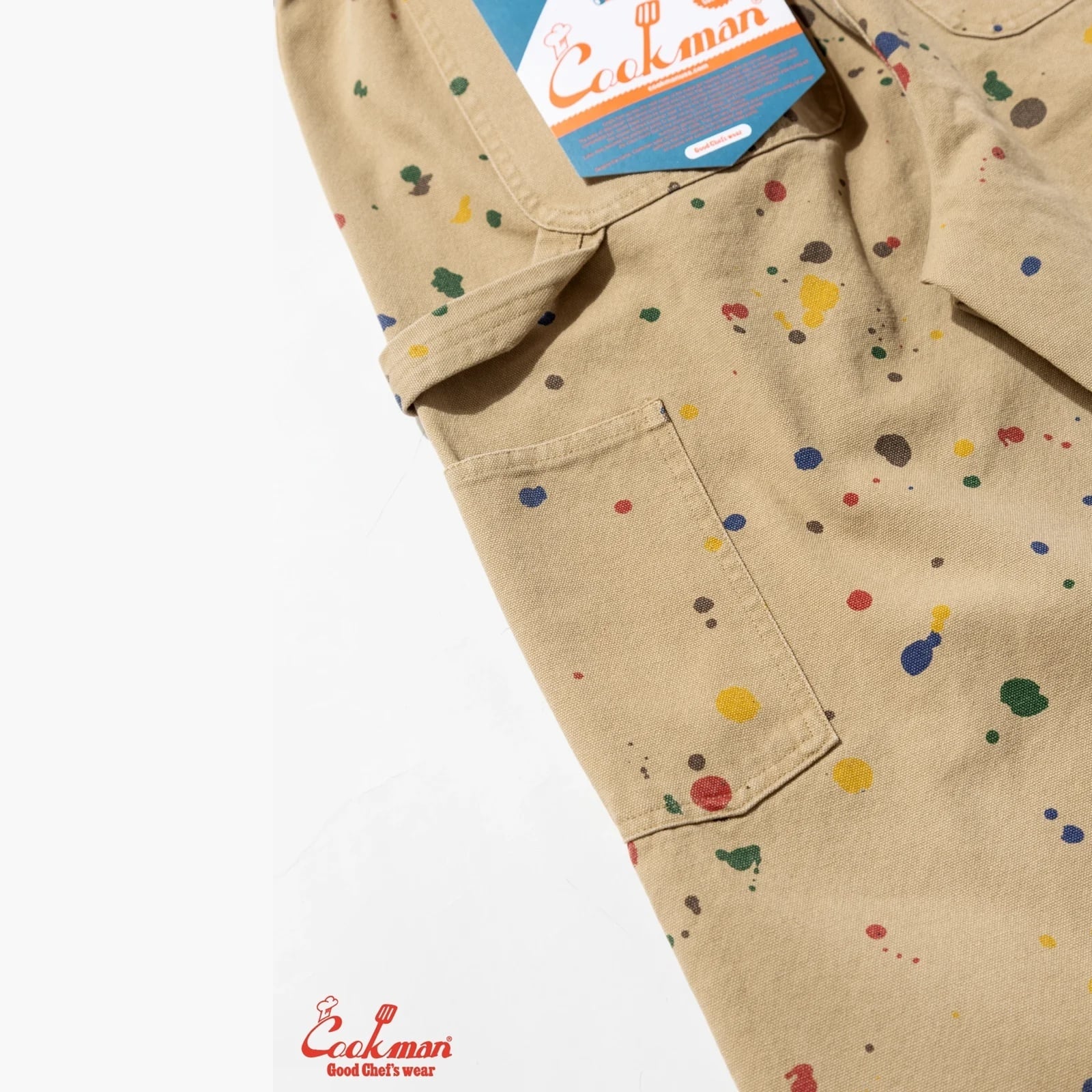 12ozのDuck Canvas生地に、Cookmanの代表的な柄と言っても過言ではない、Sauce Splashのプリントを施し、さらにウォッシュ加工により絶妙な風合いを表現。