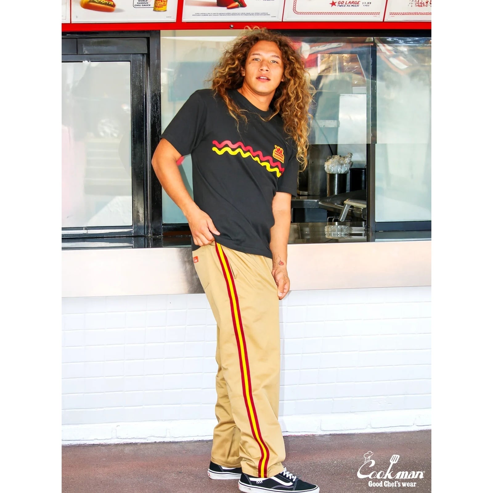 動きやすくリラックス感のあるシルエットは、シェフのみならずカリフォルニア西海岸のスケーター達からも愛されるシェフパンツです