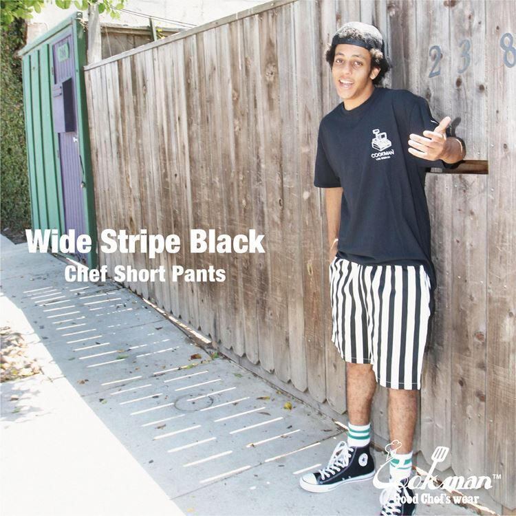 【 COOKMAN 】Chef Pants Short Wide Stripe Black クックマン ショートパンツ シェフパンツ